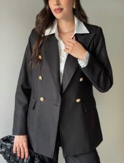O Blazer Sofistic é a definição de sofisticação moderna. Com comprimento alongado e modelagem em alfaiataria estruturada, ele entrega um caimento impecável que valoriza a silhueta e transmite poder em cada detalhe. Os botões dourados elevam a peça, trazendo um toque de luxo atemporal que transforma qualquer produção.