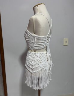 Leve, artesanal e absolutamente encantador, o Conjunto Verano é a tradução perfeita do luxo despretensioso à beira-mar. Confeccionado em macramê manual, ele traz um trabalho minucioso de tramas geométricas que valorizam o corpo com elegância e sensualidade na medida certa.
