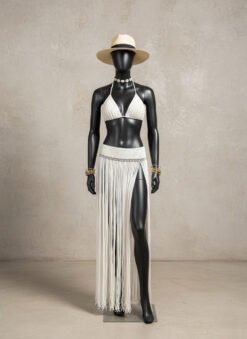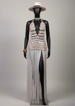 Prepare-se para brilhar com o Conjunto Salinas, uma obra-prima em crochê bordada à mão com madrepérolas naturais, criado para mulheres que amam elegância com personalidade. A blusa de sobreposição, possui decote profundo e modela o corpo com sensualidade na medida, enquanto a saia com fenda e franjas longas traz movimento hipnotizante a cada passo — simplesmente inesquecível. Ambas as peças podem ser usadas separadamente em outras ocasiões.