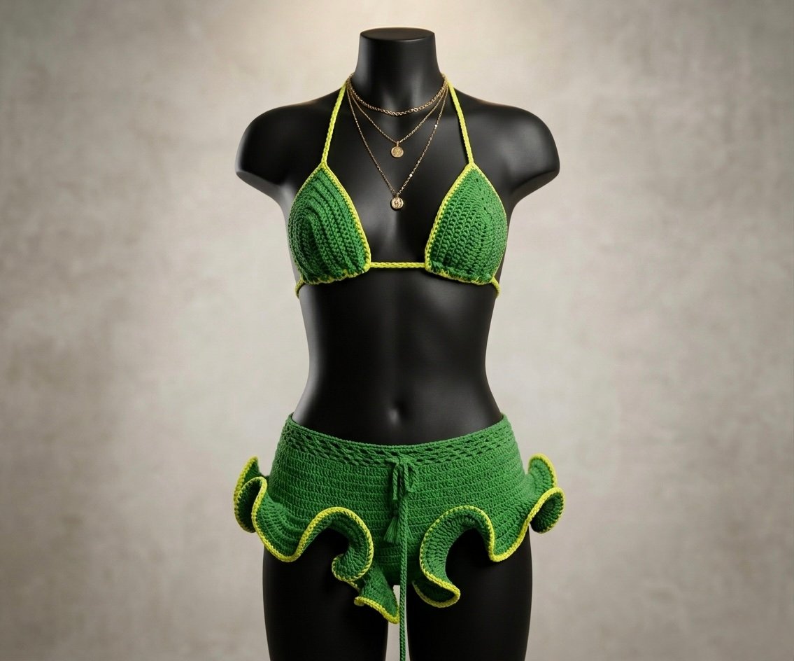 O Conjunto Tropicalia Brasil é a tradução perfeita da tendência Brasil Core — vibrante, solar e irresistivelmente sexy. Feito em crochet artesanal, ele une o mood tropical com um design moderno que valoriza cada curva.
