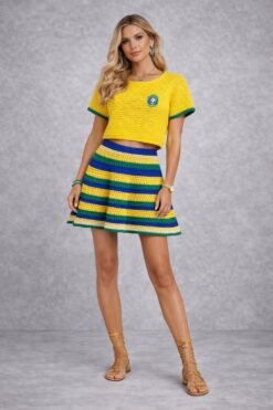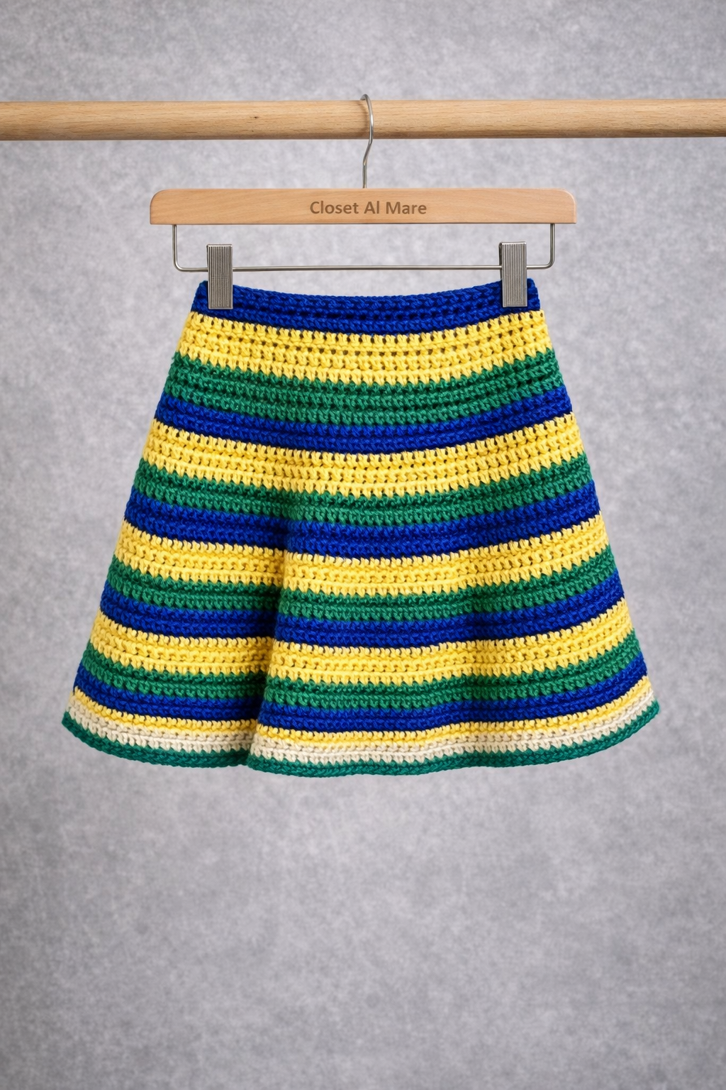 A Saia em Crochet Brasilidades celebra o artesanal brasileiro com cores vibrantes e design atemporal.
