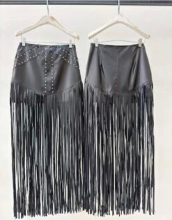 A Saia Rodeio é a peça perfeita para quem busca um visual marcante, cheio de personalidade e atitude. Confeccionada em couro sintético premium, ela combina a textura sofisticada do material com franjas longas que criam movimento e presença a cada passo. Os detalhes em spikes trazem um toque fashion e ousado, transformando a saia em um verdadeiro destaque no look.