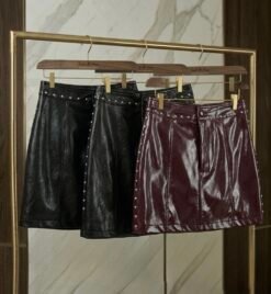A Saia Velvet é a peça-chave que transforma qualquer look em uma produção poderosa e sofisticada. Confeccionada em couro sintético premium com acabamento levemente envernizado, ela traz um brilho elegante na medida certa, perfeito para quem busca presença e estilo.