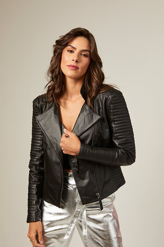 Feita em couro legítimo, a The Jacket é aquela peça-chave que exala poder e estilo. Com recortes estruturados e mangas com acabamento texturizado, ela combina o clássico da alfaiataria com a ousadia do couro, criando uma silhueta marcante e contemporânea.