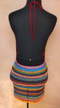 O Vestido Collors é a tradução perfeita do verão em forma de arte. Confeccionado em crochê artesanal, ele combina uma paleta vibrante de cores em listras harmoniosas que criam um visual alegre, moderno e cheio de personalidade. Cada detalhe revela o cuidado do trabalho manual, tornando a peça única e exclusiva.