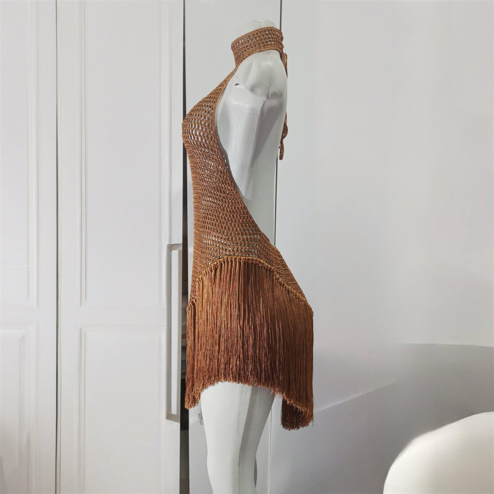 Feito à mão com delicados fios de seda, o Vestido Salinas combina sofisticação e conforto em cada detalhe. Seu design exclusivo em crochê revela uma trama intricada que realça sua beleza natural, perfeito para mulheres que valorizam o artesanato refinado.