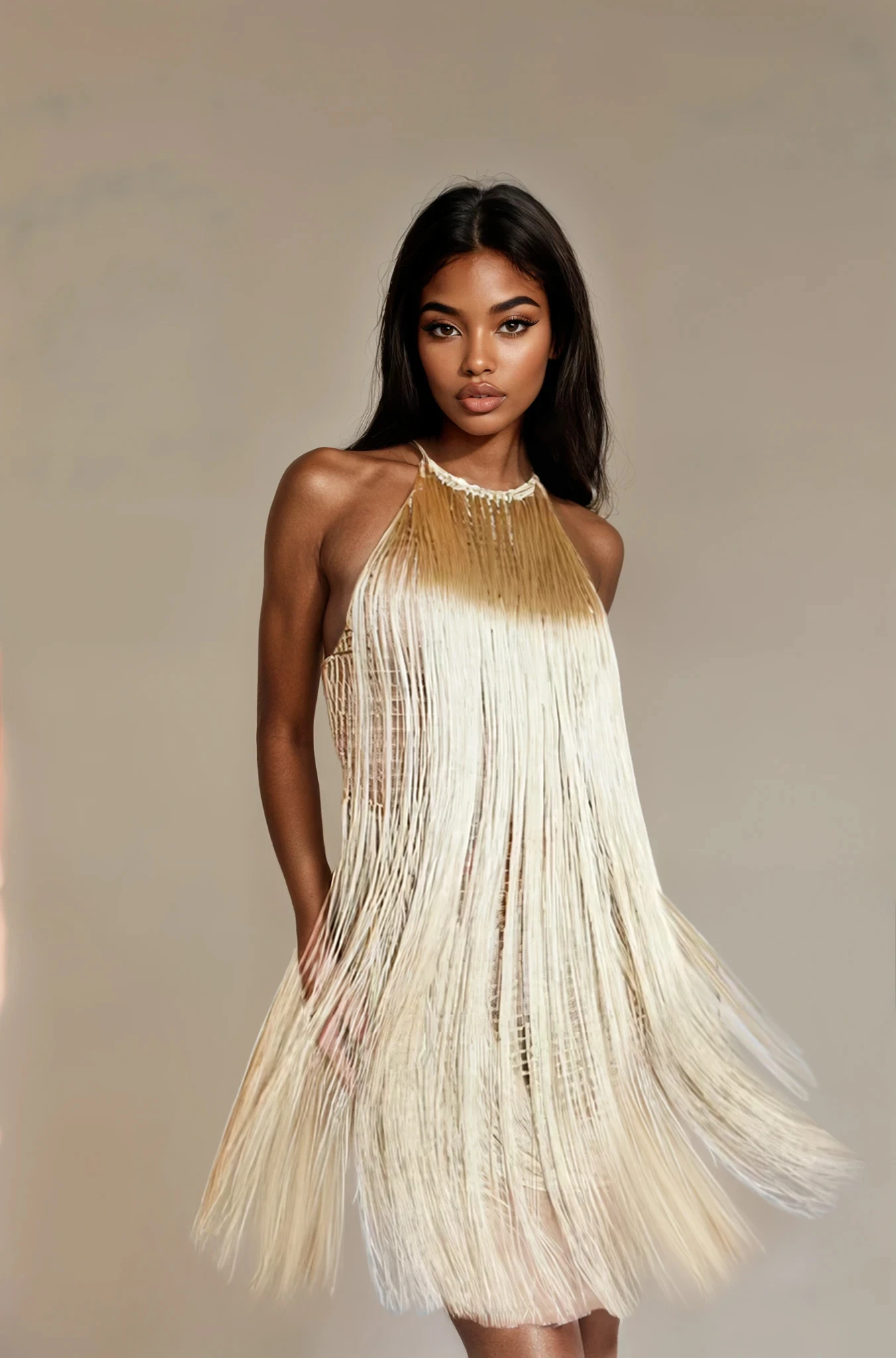 Apresentamos o deslumbrante Golden Fringes, um vestido em crochê feito com fio de seda de alta qualidade que proporciona um brilho sutil e sofisticado. Com detalhes de franjas delicadas que dançam a cada movimento, ele é a escolha perfeita para quem busca um look impactante para festas de final de ano. O fio de seda confere um toque de leveza e um caimento elegante, ideal para realçar sua presença em ocasiões especiais.