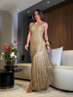 O Vestido Itacaré é a união perfeita entre sofisticação artesanal e fluidez glamorosa. Feito em fio premium Rayon com franjas longas de seda, ele abraça a silhueta com um caimento impecável e finaliza com um movimento hipnotizante a cada passo.