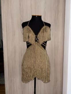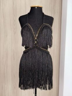 Ideal para festas boho chic, rodeios, baladas e eventos especiais, esse vestido combina elegância e sensualidade com suas franjas marcantes e detalhes dourados. Use com botas para um toque western glam ou com saltos para uma produção mais sofisticada.